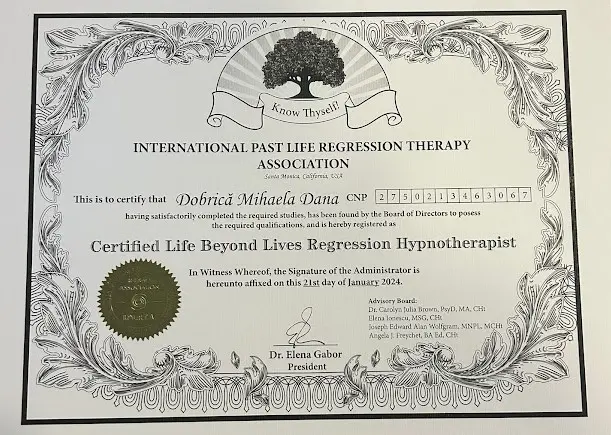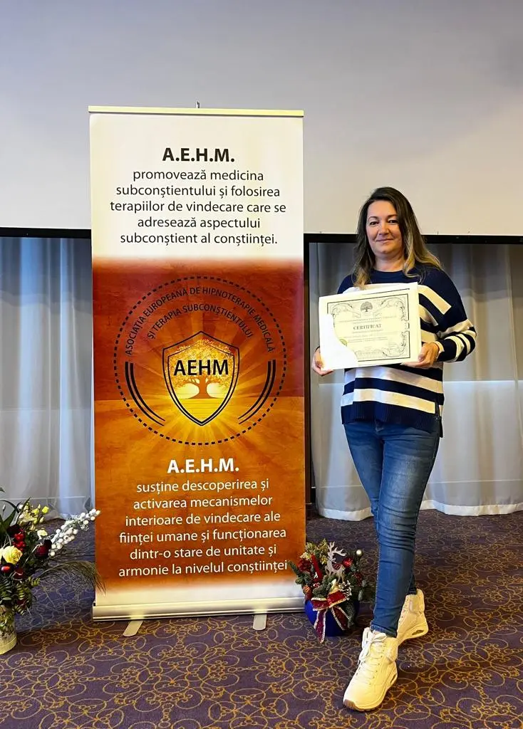 Prin hipnoterapie, aduci lumină și claritate în viețile celor care te caută, ghidându-i cu empatie și profesionalism pe drumul transformării interioare. Prin tehnici precise de hipnoză, ajuți oamenii să depășească blocaje, să elibereze traume din trecut și să își regăsească echilibrul, încrederea și puterea personală. Abordarea ta caldă și intuitivă creează un spațiu sigur, unde fiecare persoană se poate deschide și înfrunta provocările cu un nou sentiment de libertate și încredere în sine.